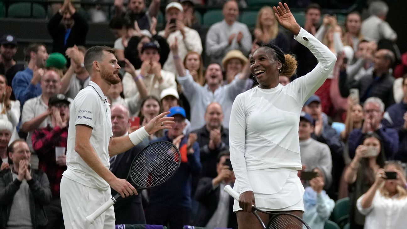 Venus Williams pairs with Jamie Murray for mixed doubles win after 'last minute' Wimbledon entry - ESPN